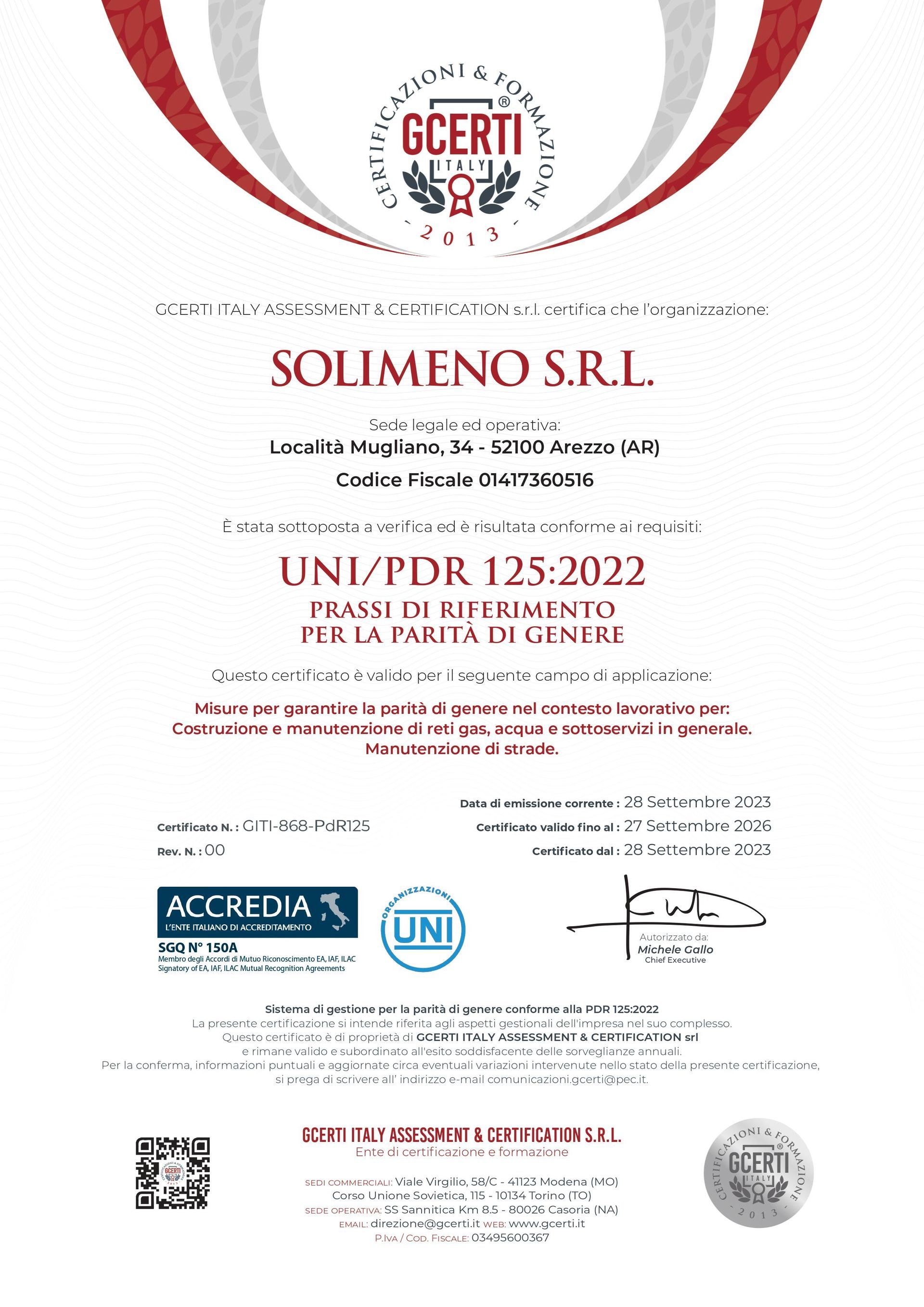 PARITA' DI GENERE - UNI PdR 125